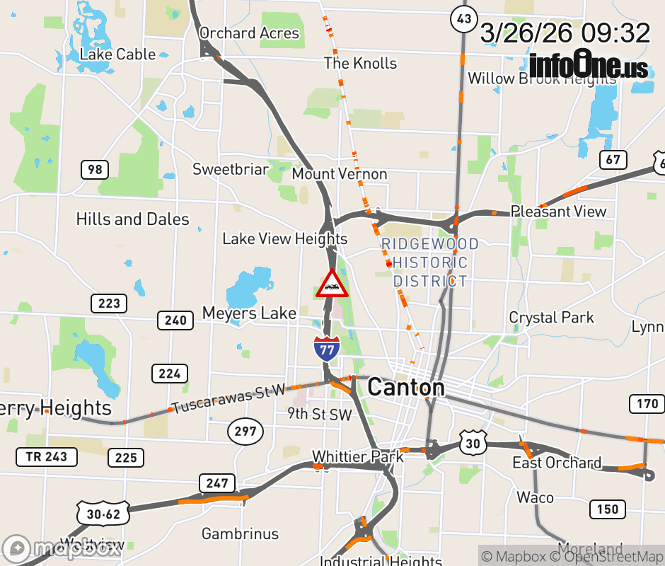 The right shoulder is blocked on I-77 North/US-62 East beyond 13Th St NW, due to a disabled vehicle. ![]() |