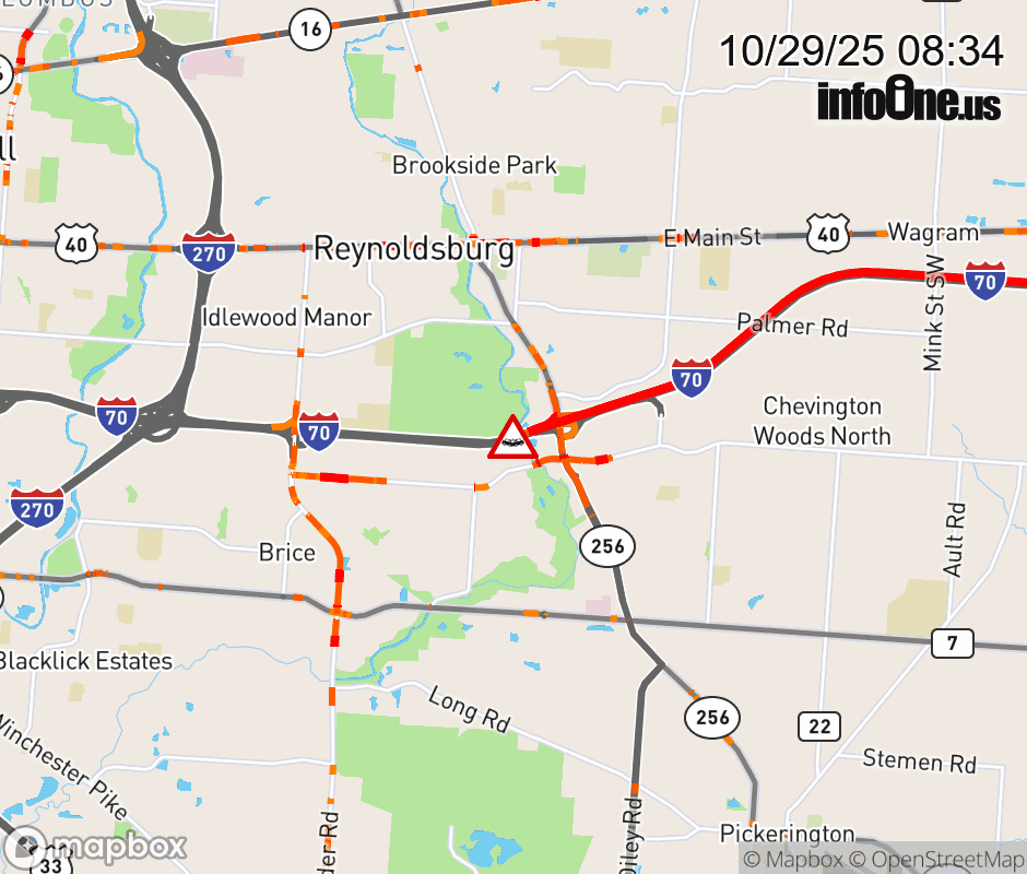 The left lane is blocked on I-70 West beyond SR-256, due to a crash. Updated: Wed 10/29/25 8:34 AM EDT ![]() Updated: Wed 10/29/25 8:34 AM EDT |