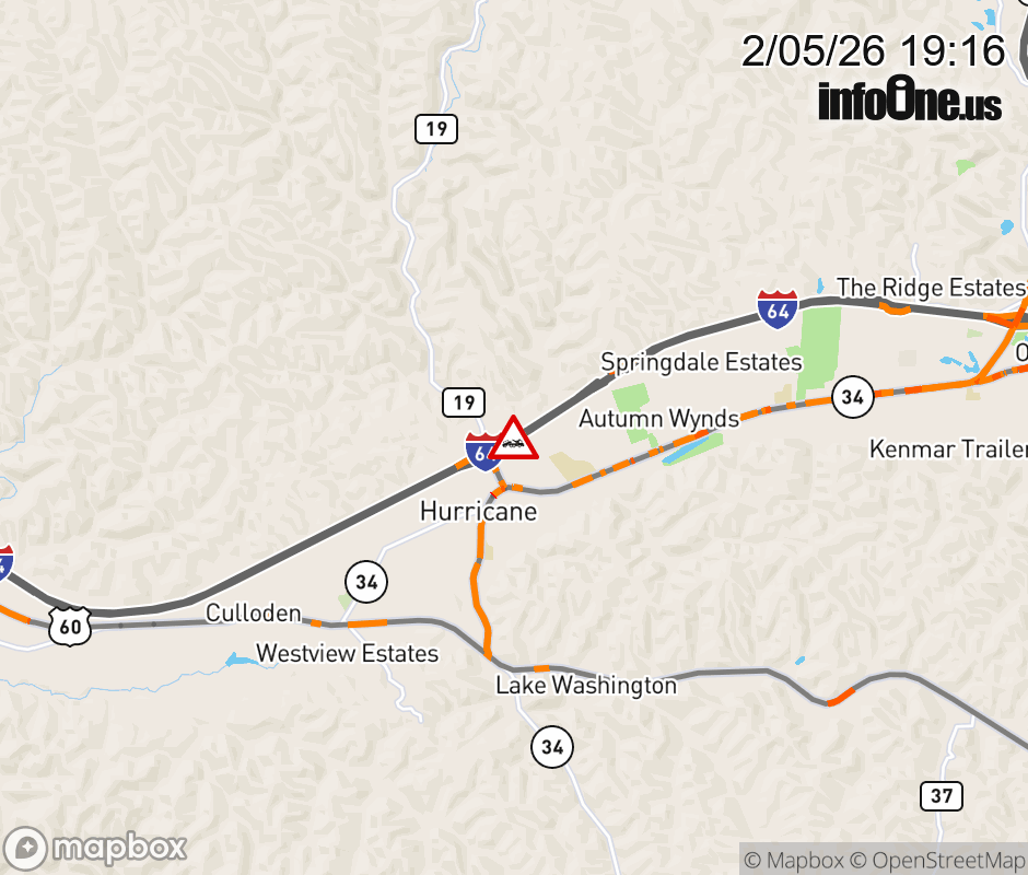 Disabled Vehicle on I-64W at Mile Marker 34.0. Updated: Thu 2/5/26 7:16 PM EST ![]() Updated: Thu 2/5/26 7:16 PM EST |