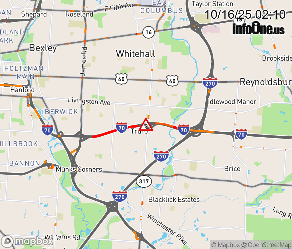 Expect lane closures on I-70 in both directions at SR-317 North/Hamilton Rd. (MM: 107.3), due to repairs/maintenance. ![]() |