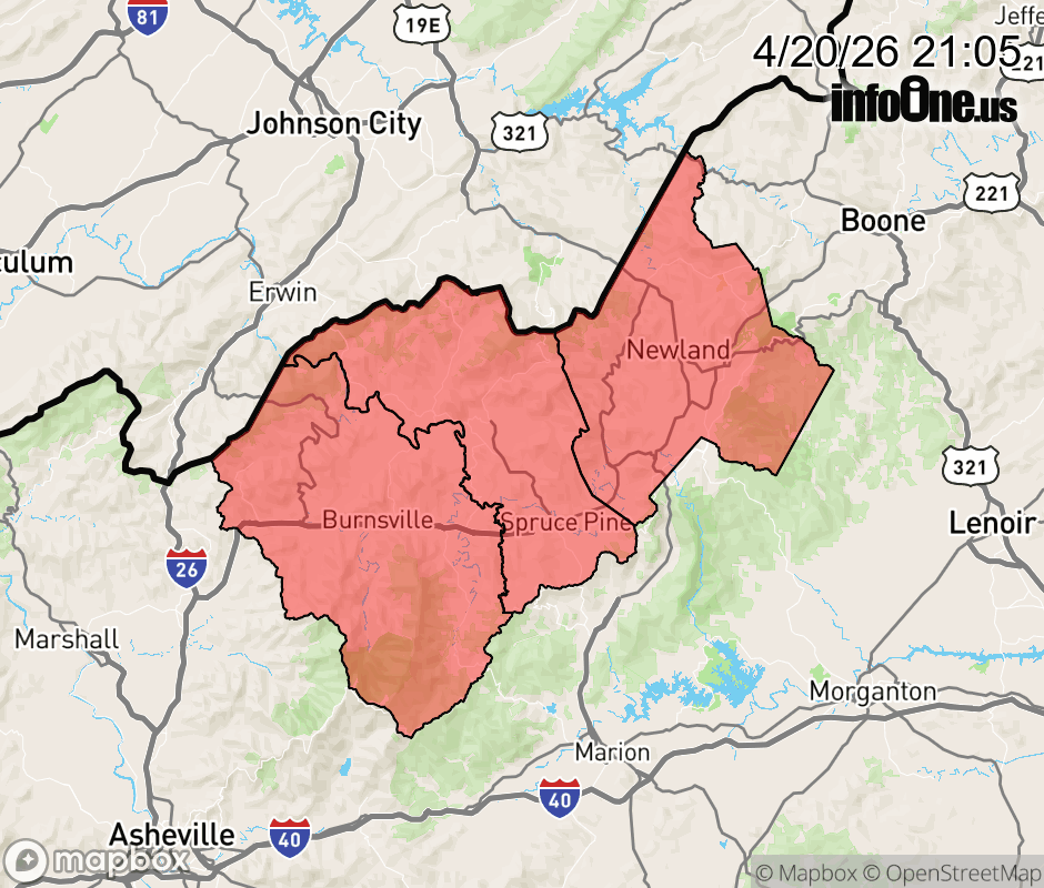 Canceled 4/21/26 5:15 AM Freeze Warning issued April 20 at 9:04PM EDT until April 21 at 9:00AM EDT by NWS Greenville-Spartanburg SC * WHAT... Sub-freezing temperatures as low as 31 expected. * WHERE... Avery, Mitchell, and Yancey Counties. * WHEN... Until 9 AM EDT Tuesday. * IMPACTS... Frost and freeze conditions could kill crops, other sensitive vegetation and possibly damage unprotected outdoor plumbing. ![]() |