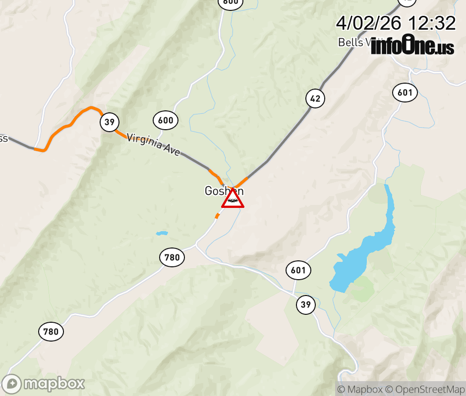 On VA-39 East in the Town of Goshen, in the vicinity of Paxton Dr; Rt. 746N/S (Rockbridge County), motorists can expect delays due to a tractor trailer crash. Updated: Thu 4/2/26 12:32 PM EDT ![]() Updated: Thu 4/2/26 12:32 PM EDT |