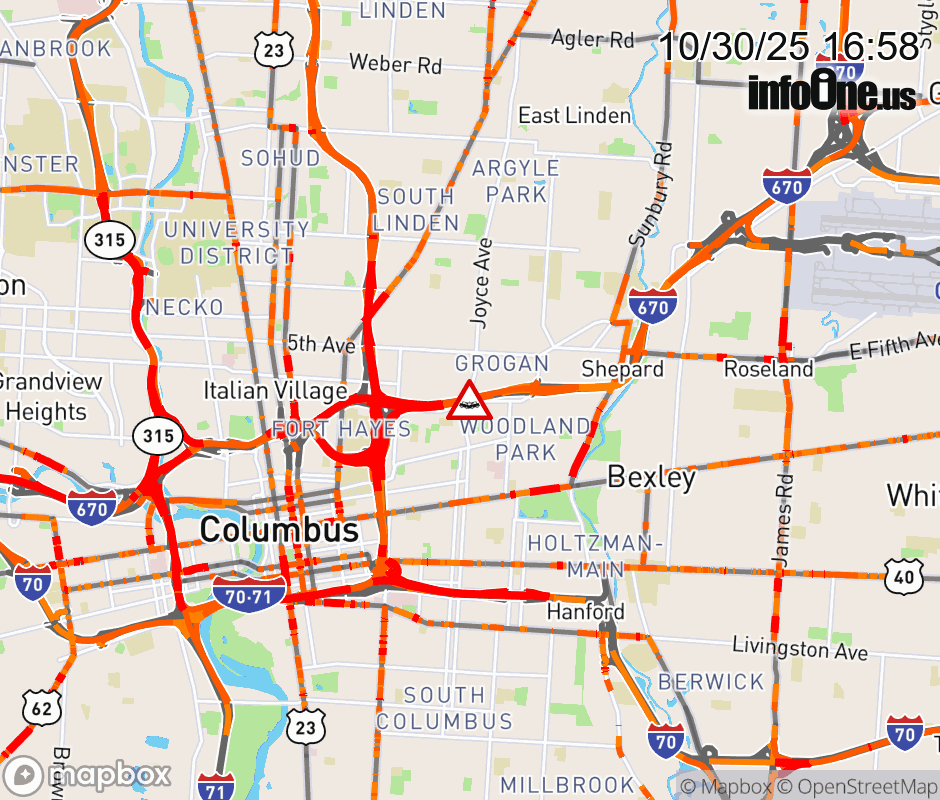 The right shoulder is blocked on I-670 East beyond I-71 South, due to a crash. Updated: Thu 10/30/25 4:58 PM EDT ![]() Updated: Thu 10/30/25 4:58 PM EDT |