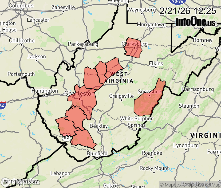 Canceled 2/21/26 3:26 PM Winter Storm Warning issued February 21 at 12:24PM EST until February 24 at 1:00AM EST by NWS Charleston WV * WHAT... Heavy snow expected. Total snow accumulations between 4 and 5 inches. Winds gusting as high as 35 mph. * WHERE... Portions of central, northeast, northern, and southern West Virginia. * WHEN... From 1 AM Sunday to 1 AM EST Tuesday. * IMPACTS... Roads, and especially bridges and overpasses, will likely become slick and hazardous. Travel could be very difficult. The hazardous conditions could impact the Monday morning and evening commutes. ![]() |