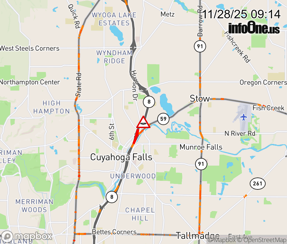 The right shoulder is blocked on SR-8 North beyond Front St/Second St, due to a crash. Updated: Fri 11/28/25 9:14 AM EST ![]() Updated: Fri 11/28/25 9:14 AM EST |