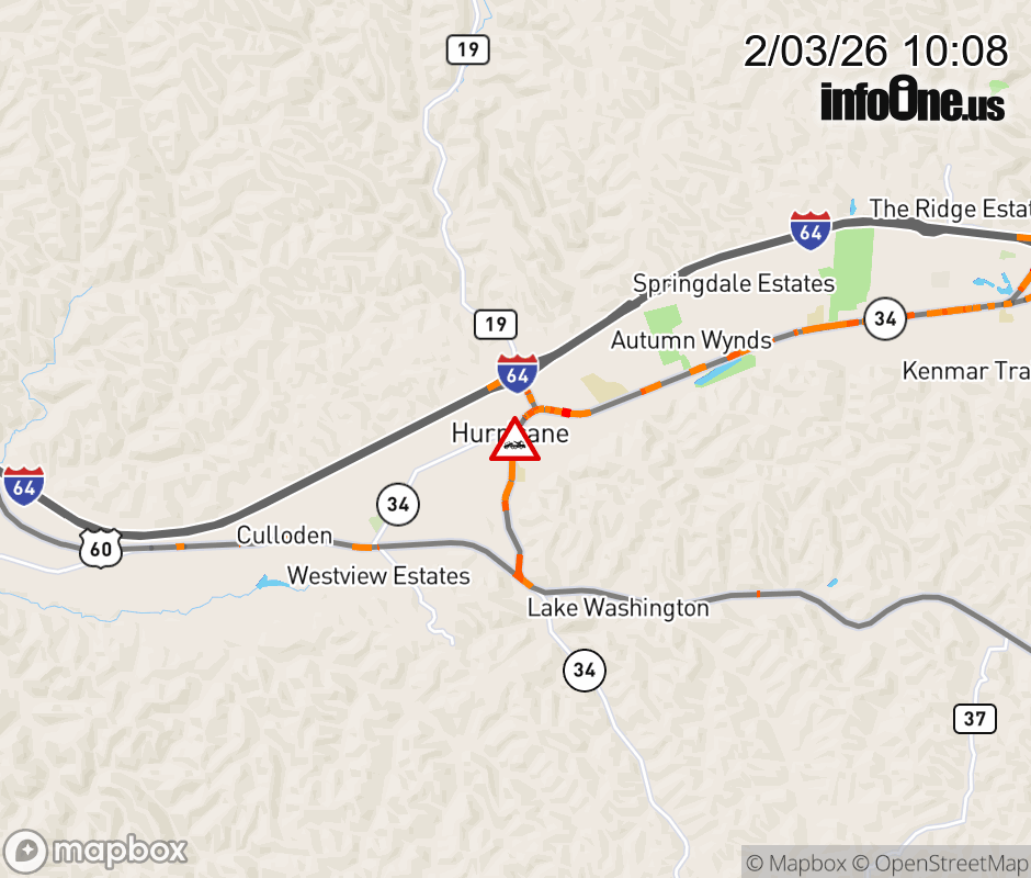 Disabled Vehicle on WV-34 (Midland Trail) & Main St Access in Hurricane. Updated: Tue 2/3/26 10:08 AM EST ![]() Updated: Tue 2/3/26 10:08 AM EST |