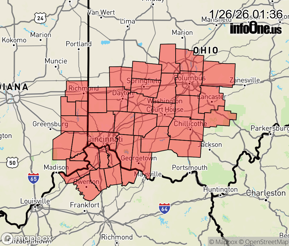 Canceled 1/26/26 9:14 AM Winter Storm Warning issued January 26 at 1:35AM EST until January 26 at 12:00PM EST by NWS Wilmington OH * WHAT... Areas of blowing snow and continued hazardous travel due to accumulated snowfall. * WHERE... Portions of east central and southeast Indiana, northern Kentucky, and central, south central, southwest, and west central Ohio. * WHEN... Until noon EST today. * IMPACTS... Travel conditions remain very difficult. Plan on slippery road conditions. The hazardous conditions will impact the Monday morning commute. ![]() |