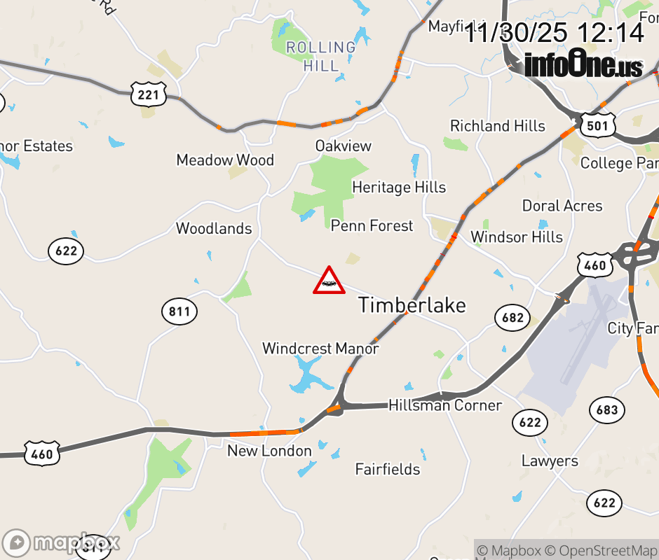 On Rt. 622 in the County of Campbell, in the vicinity of Jefferson Manor Dr; Rt. 835N/S (Campbell County), motorists can expect delays due to a vehicle crash. All east lanes are closed. Updated: Sun 11/30/25 12:14 PM EST ![]() Updated: Sun 11/30/25 12:14 PM EST |