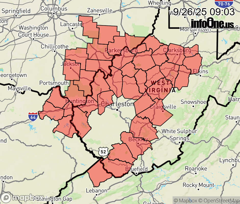 Canceled 9/26/25 10:00 AM Special Weather Statement issued September 26 at 9:00AM EDT by NWS Charleston WV Dense fog has been observed across the area this morning, with visibility of less than a half mile in some locations. Motorists should exercise extra caution and be prepared for rapidly changing visibility while driving. The fog should gradually diminish by mid-morning. ![]() |
