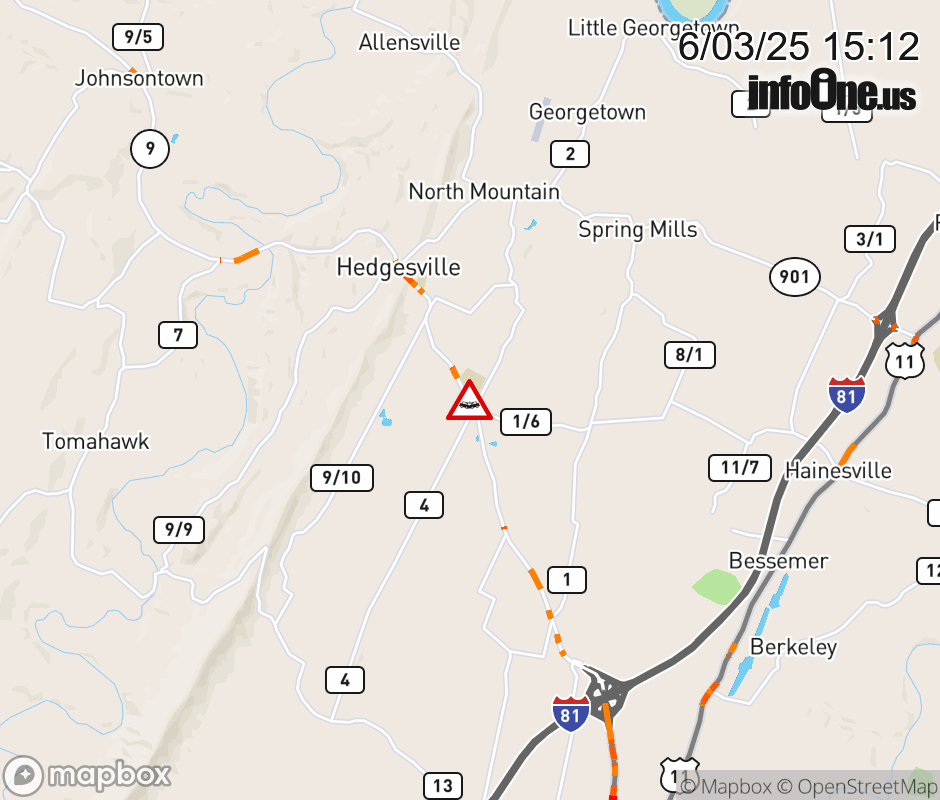 In Berkeley County there is a Vehicle Crash on WV-9 at Mile Marker 7.8. 3400 Hedgesville Rd./Cumbo Rd/Ridge Rd North . ![]() |