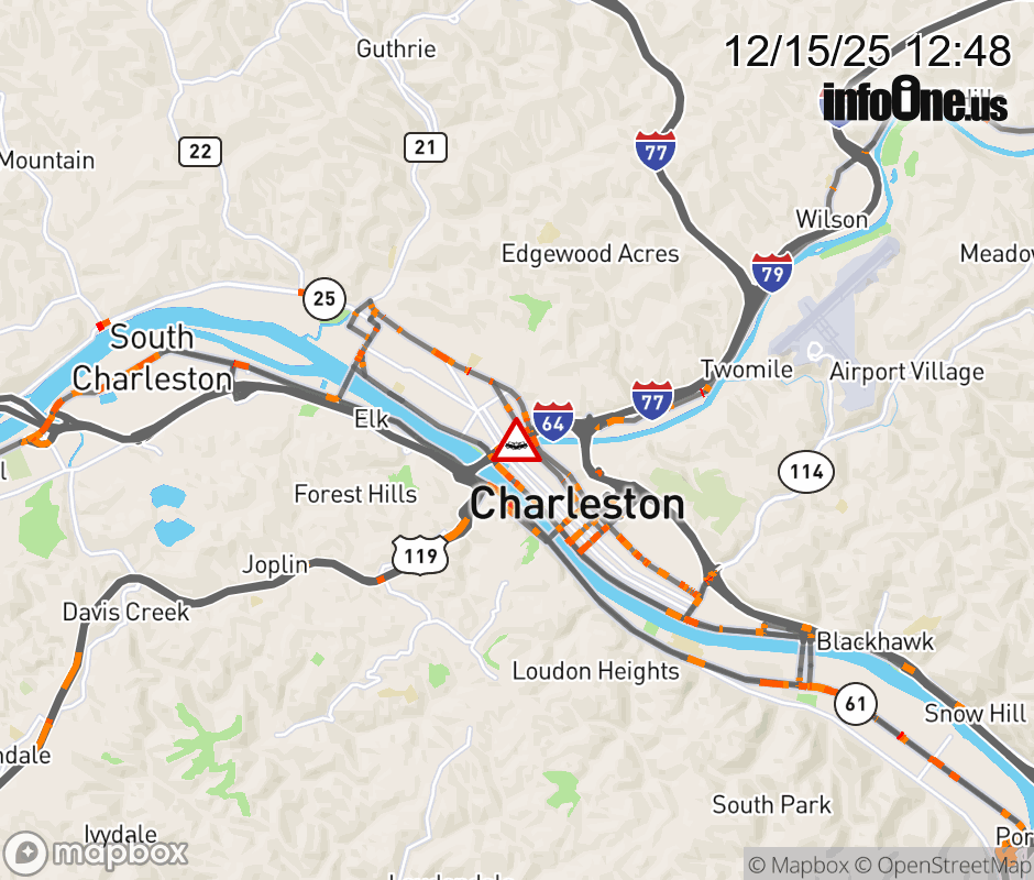 Vehicle Crash on I-64W at Mile Marker 58.0. The westbound right lane is closed. Updated: Mon 12/15/25 12:48 PM EST ![]() Updated: Mon 12/15/25 12:48 PM EST |