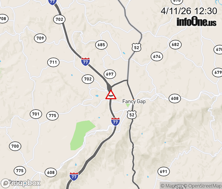 On I-77 at mile marker 8.5 in the County of Carroll, motorists can expect delays due to a vehicle crash. The north left shoulder is closed. ![]() |
