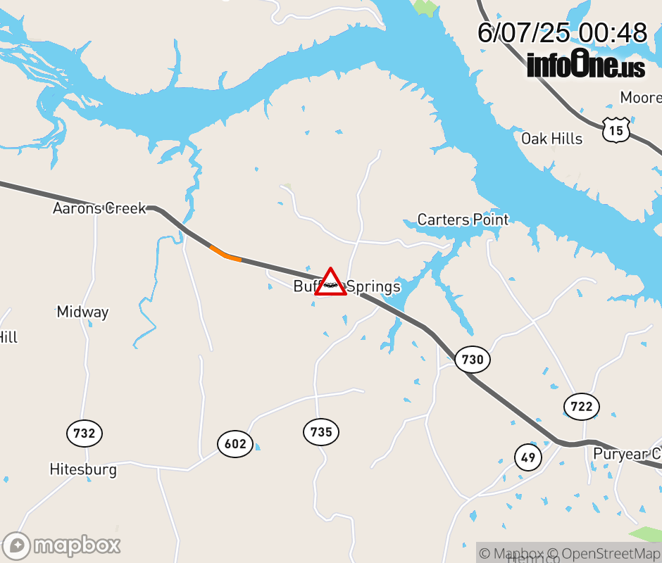 On US-58 in the County of Mecklenburg, in the vicinity of Rt. 732E/W (Mecklenburg County), motorists can expect delays due to a vehicle crash. The west right lane and right shoulder are closed. Updated: Sat 6/7/25 12:48 AM EDT ![]() Updated: Sat 6/7/25 12:48 AM EDT |