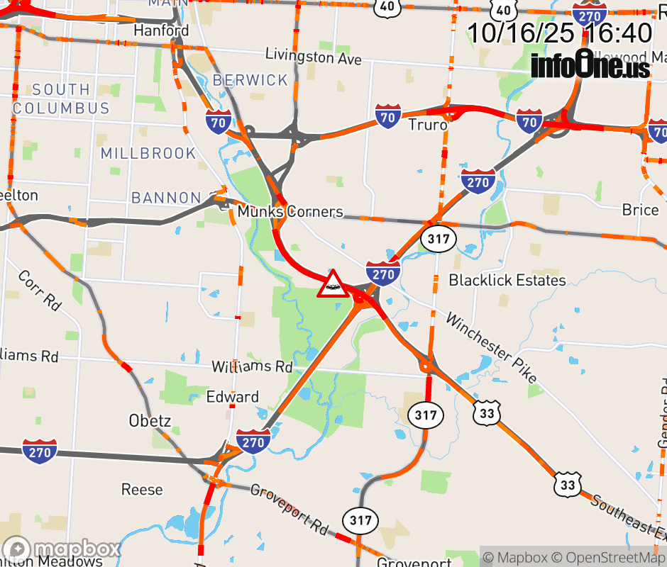 The left shoulder is blocked on US-33 East at I-270 South, due to a crash. ![]() |