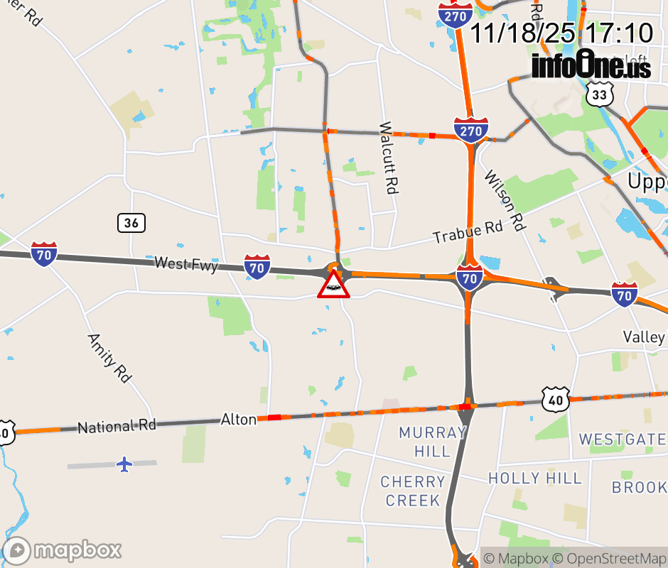 Expect lane closures on Ramp from I-70 E to Hilliard Rome Rd, due to a crash. ![]() |
