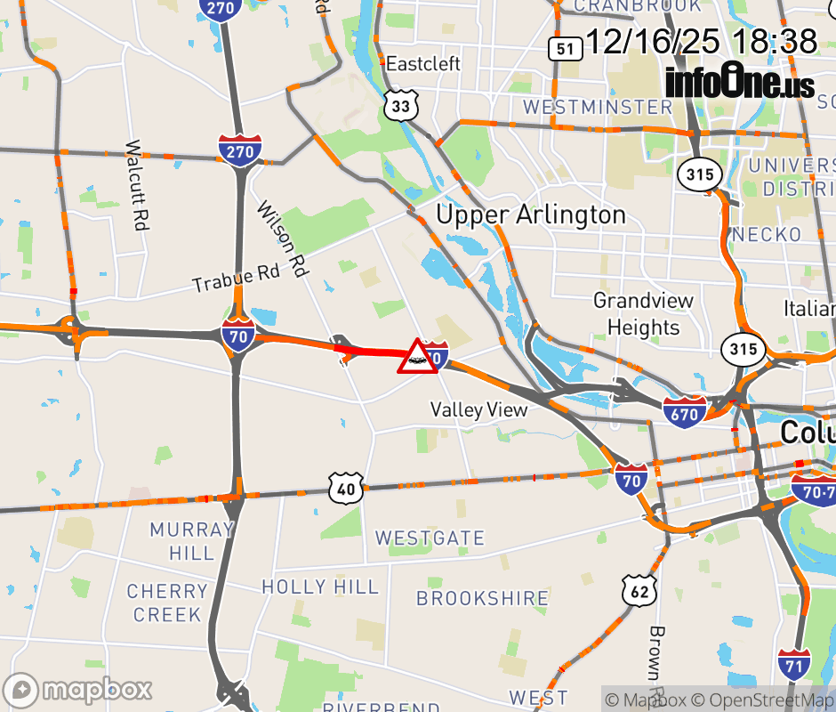 The left shoulder is blocked on I-70 East beyond Wilson Rd, due to a crash. Updated: Tue 12/16/25 6:38 PM EST ![]() Updated: Tue 12/16/25 6:38 PM EST |