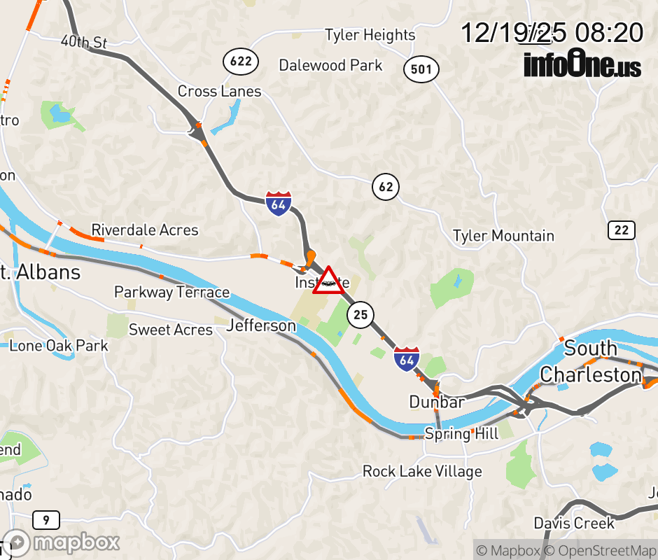 Canceled 12/19/25 11:22 AM Location: I-64 at MM 50.3, WV Accident.