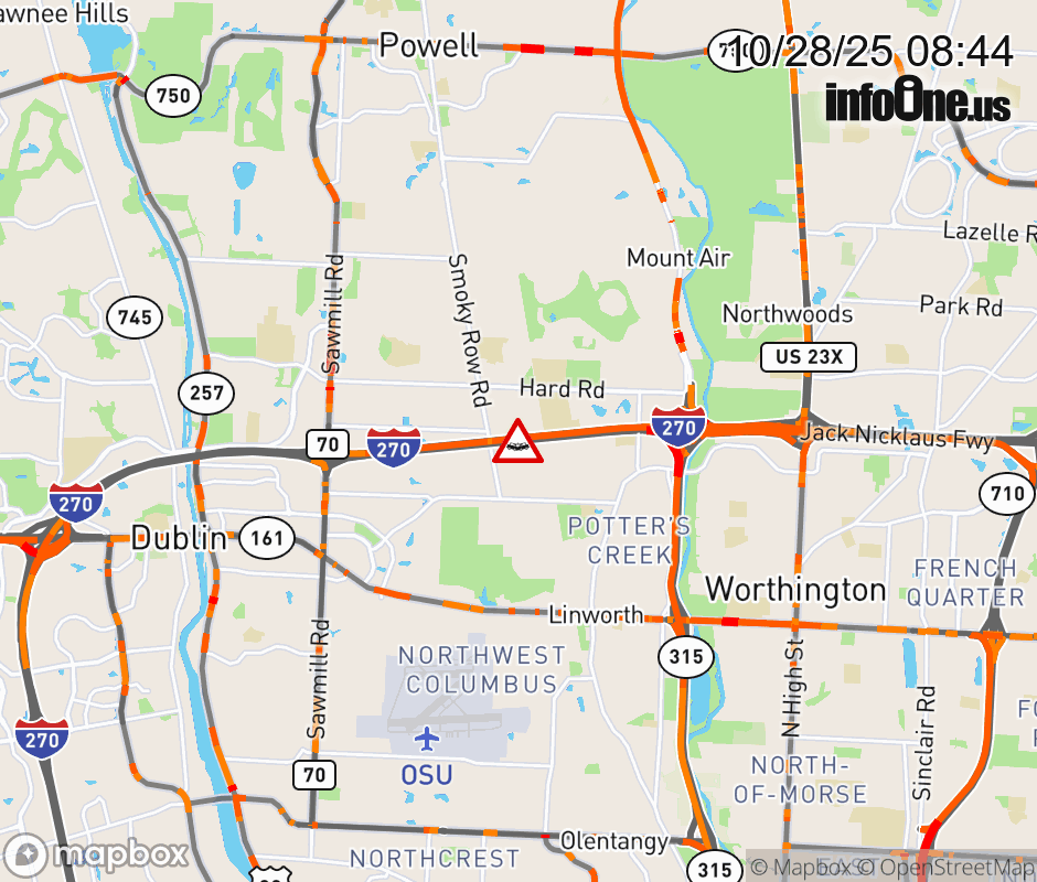 The right shoulder is blocked on I-270 East beyond Sawmill Rd, due to a crash. Updated: Tue 10/28/25 8:44 AM EDT ![]() Updated: Tue 10/28/25 8:44 AM EDT |