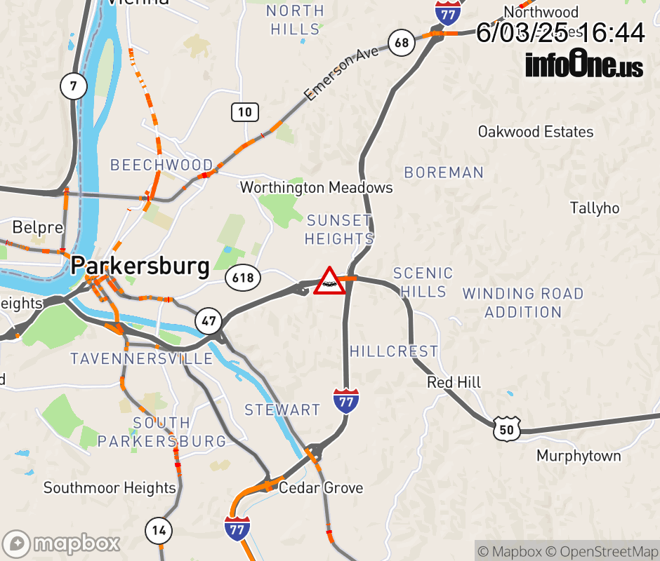 In Wood County there is a Vehicle Crash on US-50E at Mile Marker 9.65. ![]() |