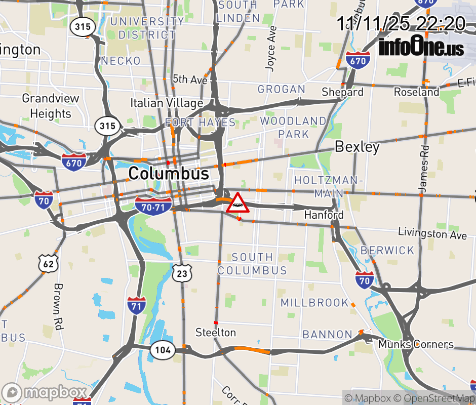 The left lane is blocked on I-70 West at I-71 North/US-40 Broad St, due to a crash.