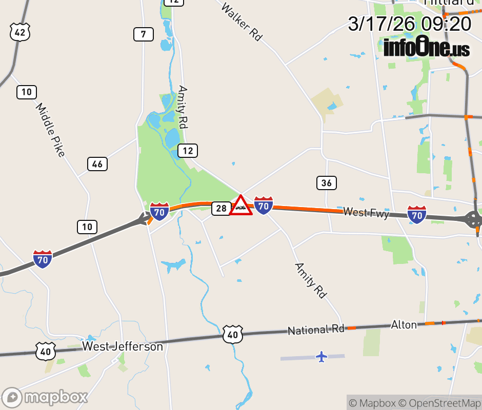 The right lane is blocked on I-70 West beyond Hilliard-Rome Rd South, due to a disabled vehicle. ![]() |