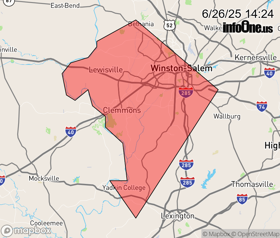 Canceled 6/26/25 3:30 PM Special Weather Statement issued June 26 at 2:22PM EDT by NWS Raleigh NC At 222 PM EDT, Doppler radar was tracking a strong thunderstorm near Winston-Salem, moving southwest at 10 mph. HAZARD...Wind gusts up to 40 mph. SOURCE...Radar indicated. IMPACT...Gusty winds could knock down tree limbs and blow around unsecured objects. Locations impacted include... Winston-Salem, Clemmons, Bermuda Run, Huntsville, Lewisville, Arcadia, Pfafftown, and Welcome. ![]() |