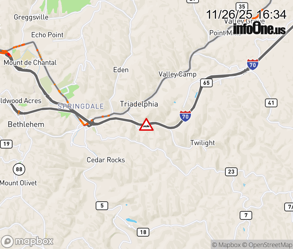 Canceled 11/26/25 4:38 PM Location: I-70 at MM 7.0, WV Disabled vehicle.