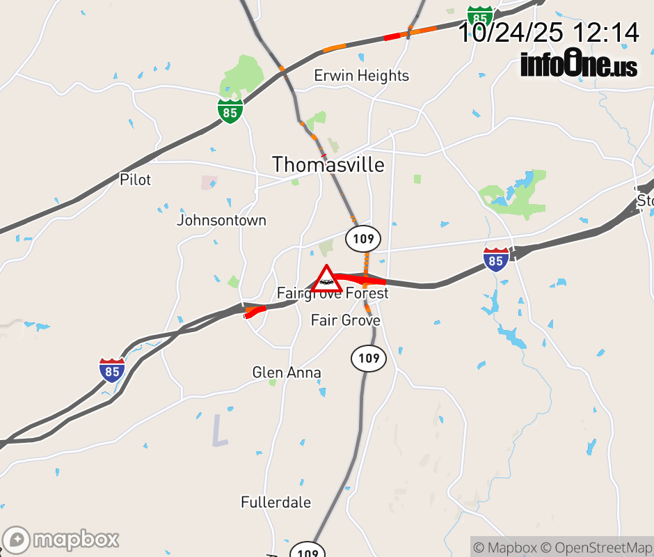 The left 2 lanes are closed before Exit 103(NC-109). Updated: Fri 10/24/25 12:14 PM EDT ![]() Updated: Fri 10/24/25 12:14 PM EDT |