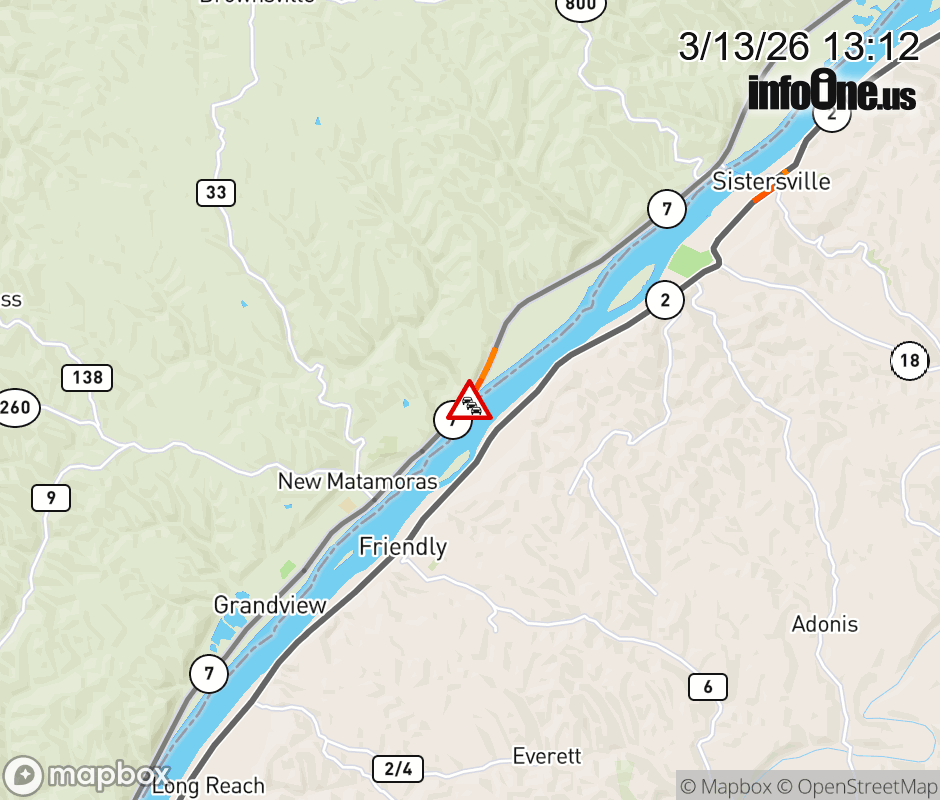 SR-7 CLOSED in BOTH DIRECTIONS 0.3 miles beyond N Fork Rd (MM: 53), due to debris. Use alternate route. SR-7 CLOSED in BOTH DIRECTIONS 0.3 miles beyond N Fork Rd (MM: 53), due to debris. Use alternate route. ![]() |