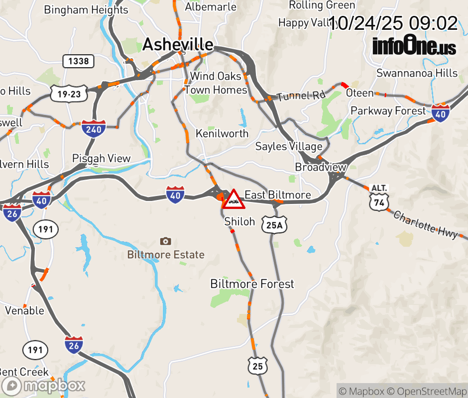 The left lane is closed near Exit 50, US 25 (Hendersonville Road). ![]() |