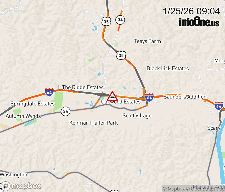 Vehicle Crash on I-64E at Mile Marker 39.0. Updated: Sun 1/25/26 9:04 AM EST ![]() Updated: Sun 1/25/26 9:04 AM EST |