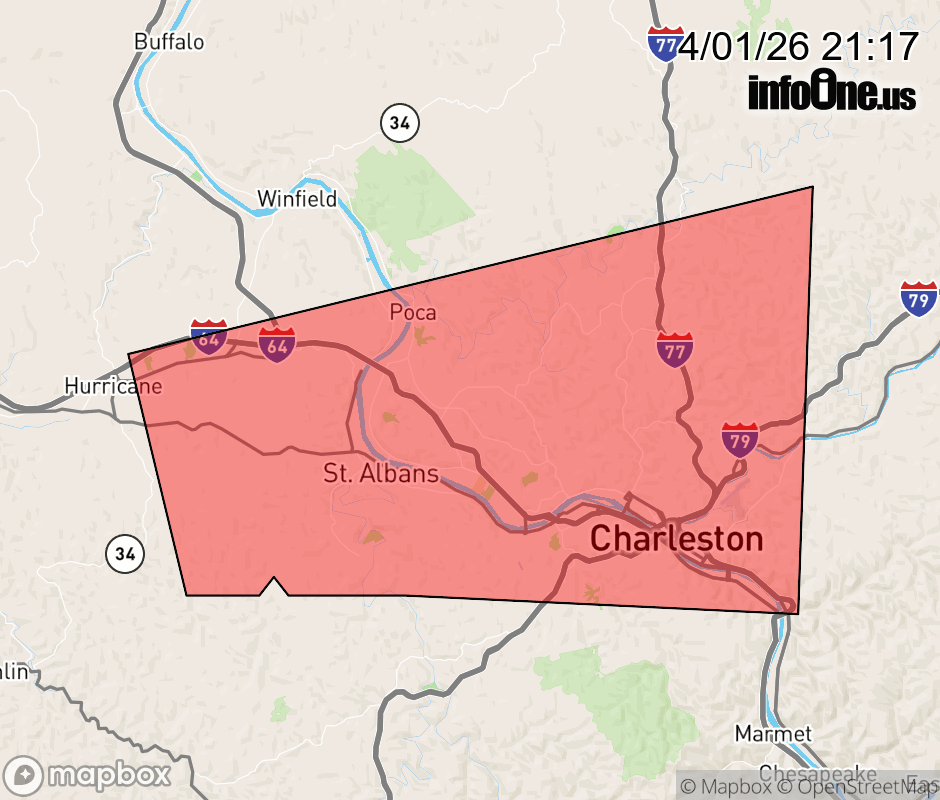 Canceled 4/1/26 9:45 PM Special Weather Statement issued April 1 at 9:15PM EDT by NWS Charleston WV At 915 PM EDT, Doppler radar was tracking a strong thunderstorm near Tornado, or near Nitro, moving east at 30 mph. HAZARD...Wind gusts up to 50 mph and penny size hail. SOURCE...Radar indicated. IMPACT...Gusty winds could knock down tree limbs and blow around unsecured objects. Minor hail damage to vegetation is possible. Locations impacted include... Charleston, Nitro, Jefferson, South Charleston, St. Albans, Dunbar, Hurricane, Sissonville, Poca, Cross Lanes, Institute, Tornado, Teays Valley, and Coal Fork. This includes the following highways... Interstate 79 between mile markers 1 and 5. Interstate 77 in West Virginia between mile markers 96 and 113. Interstate 64 in West Virginia near mile marker 35, and between mile markers 38 and 57. West Virginia Turnpike near mile marker 95. Route 119 between mile markers 75 and 80. ![]() |