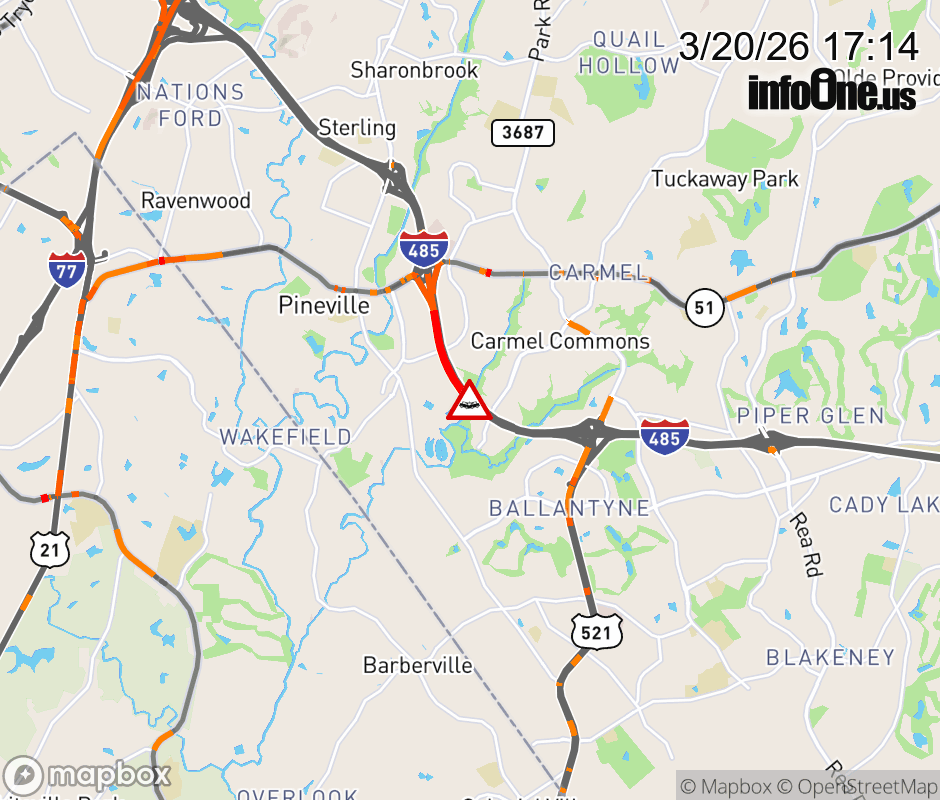 The two left lanes are closed one-mile past Exit 64 A (Pineville-Matthews Rd). ![]() |