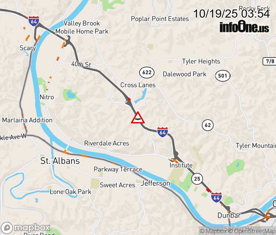 Canceled 10/19/25 5:50 AM Location: I-64 at MM 48.0, WV Accident.