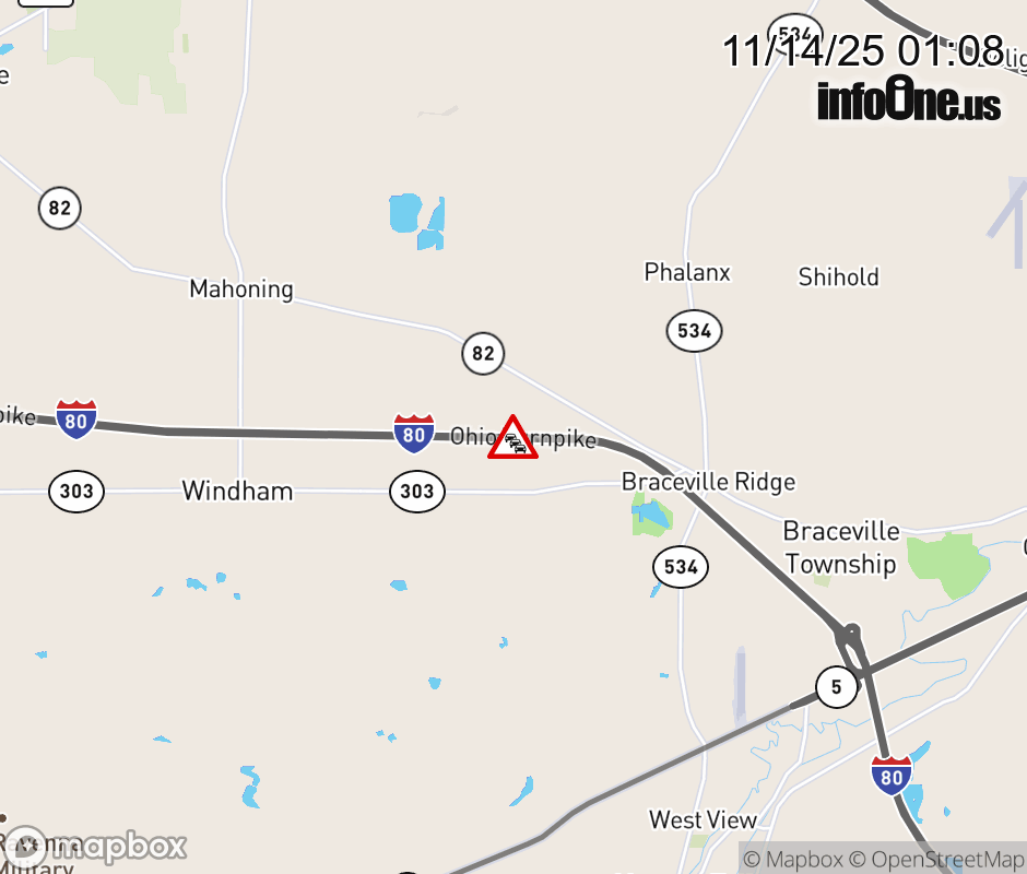 Expect lane closures on I-80 West (Ohio Turnpike) beyond SR-5, due to a fire. ![]() |