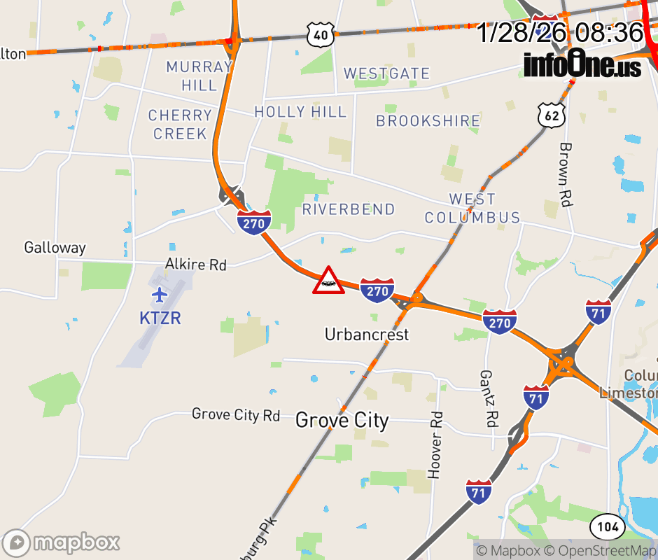 The left shoulder is blocked on I-270 West beyond US-62/Harrisburg Pike, due to a crash. ![]() |