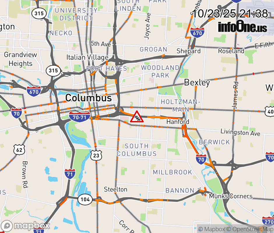 The 2 right lanes are blocked on I-70 East beyond E Fulton St, due to repairs/maintenance. ![]() |