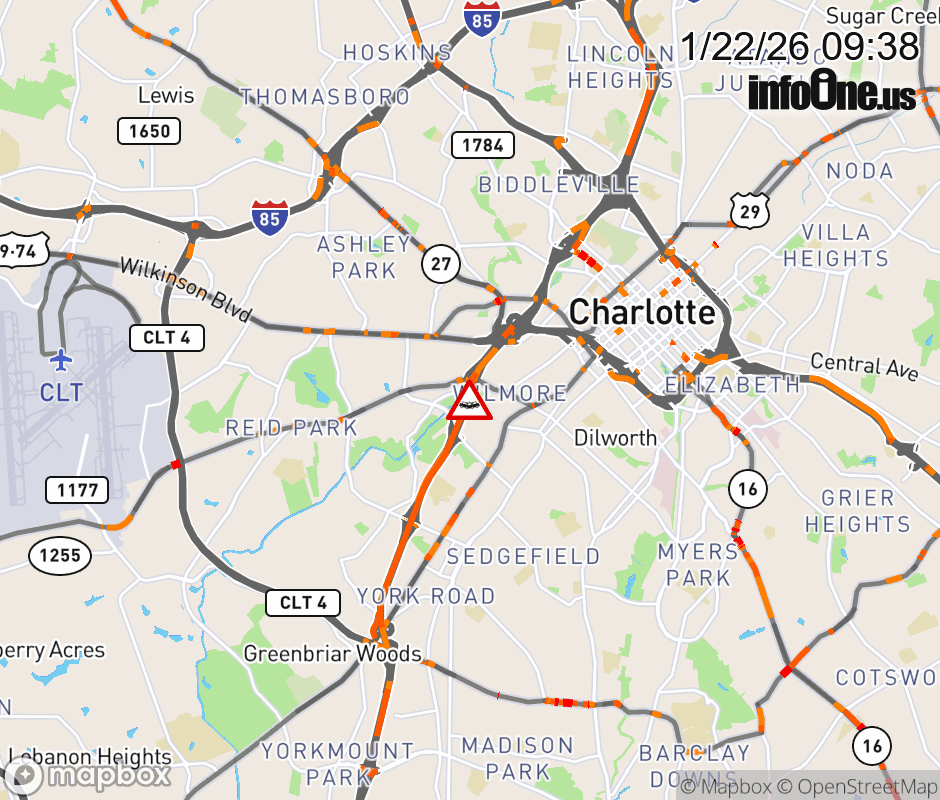 The right lane is closed before Exit 9 (John Belk Frwy). ![]() |