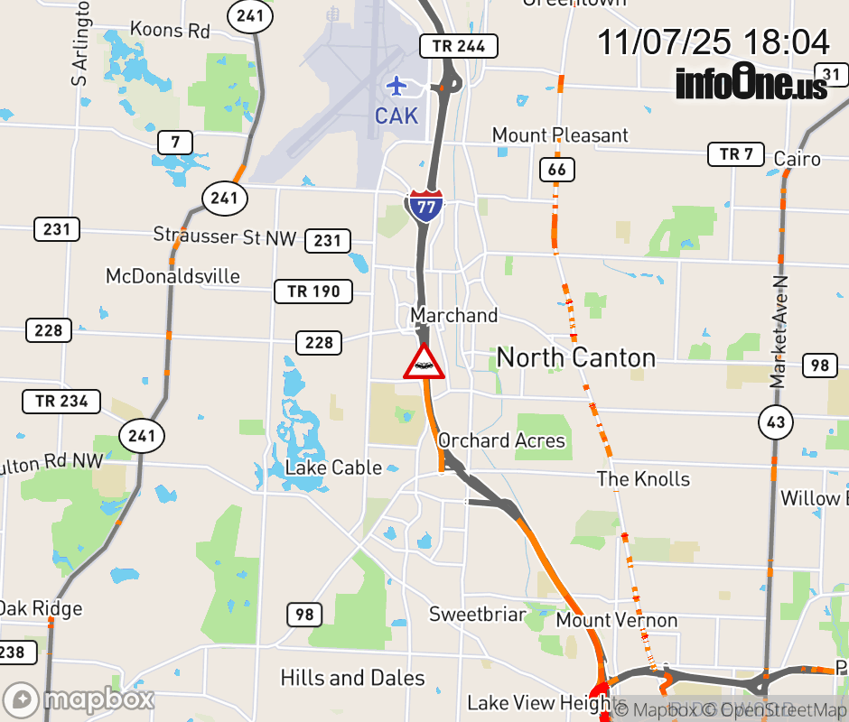 The right lane is blocked on I-77 South beyond Portage St, due to a crash. ![]() |