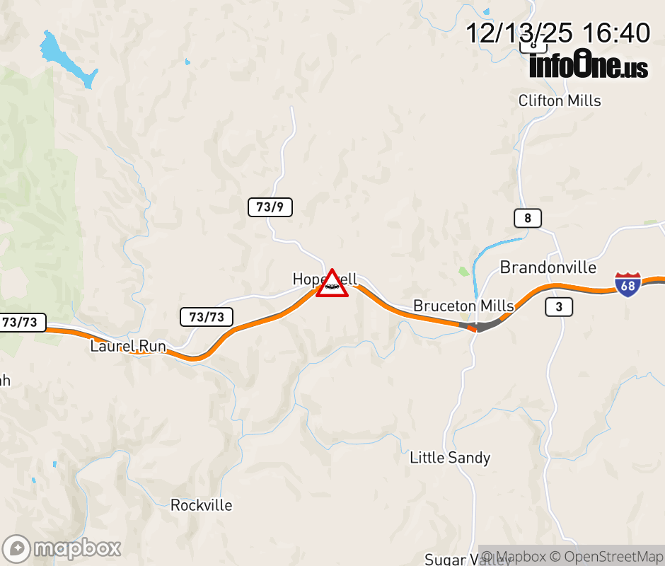 Canceled 12/13/25 6:36 PM Location: I-68 at MM 21.0, WV Accident.