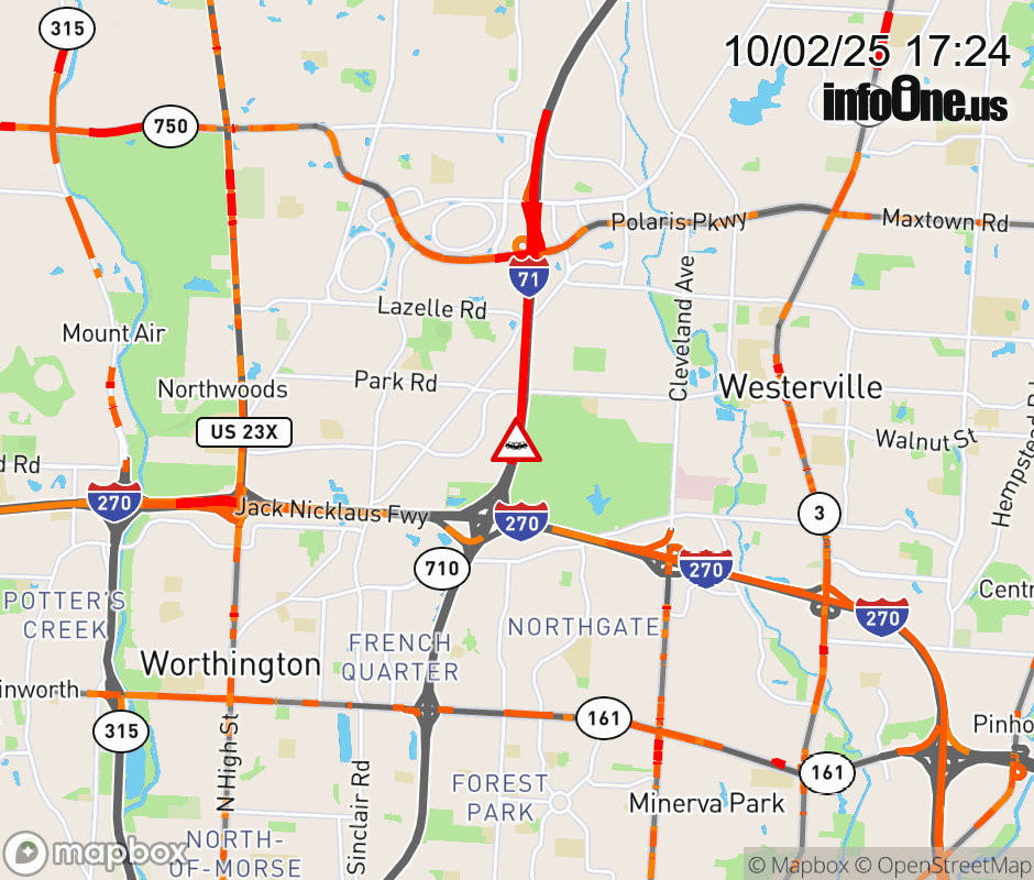 The right lane is blocked on I-71 South at I-270 West (North Side), due to a crash. Updated: Thu 10/2/25 5:24 PM EDT ![]() Updated: Thu 10/2/25 5:24 PM EDT |