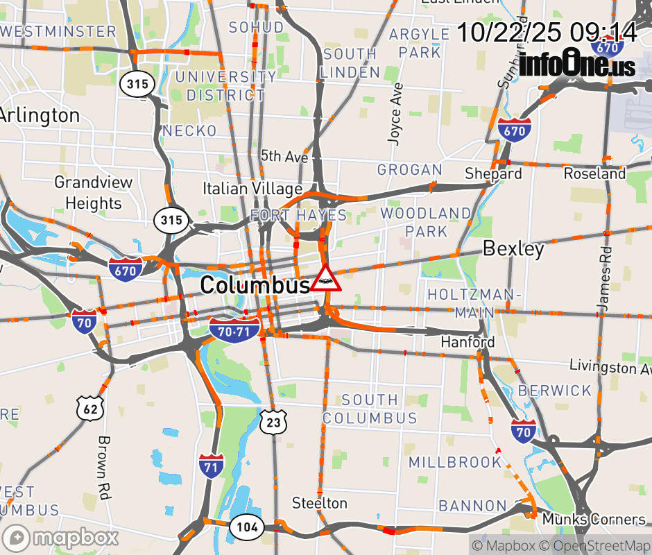 The right shoulder is blocked on I-71 South beyond US-40/Broad St, due to a crash. ![]() |