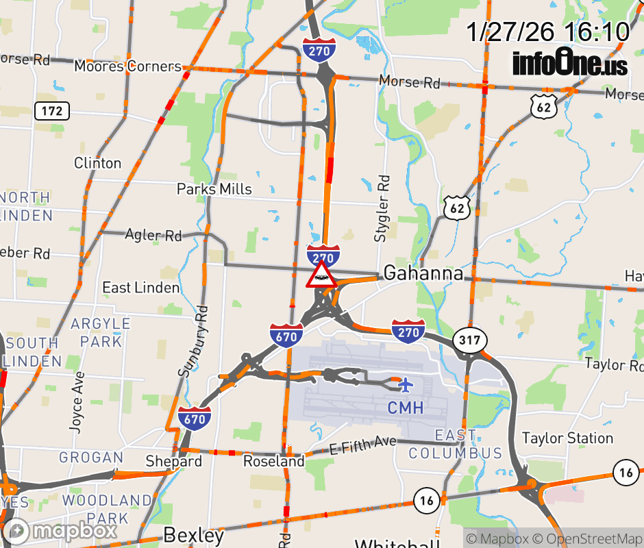 Expect lane closures on Ramp I-270 South to I-670/US-62 West, due to a crash. ![]() |