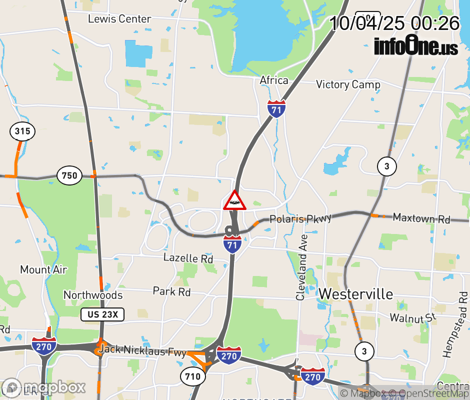 The left lane is blocked on I-71 South at Gemini Place To Polaris Pkwy, due to a crash. Updated: Sat 10/4/25 12:26 AM EDT ![]() Updated: Sat 10/4/25 12:26 AM EDT |
