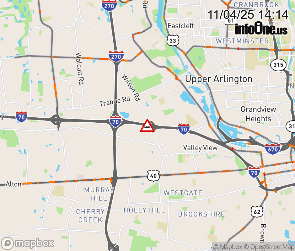The right shoulder is blocked on I-70 East at Wilson Rd, due to a crash. ![]() |