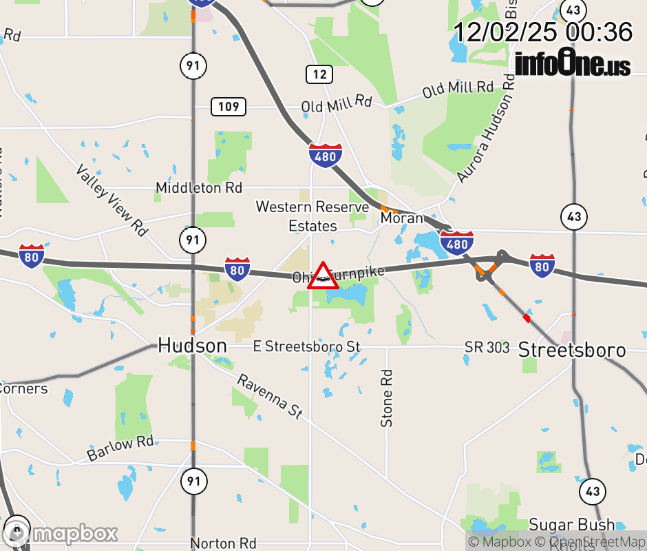 Expect lane closures on I-80 West (Ohio Turnpike) beyond I-480/SR-14, due to a crash. ![]() |