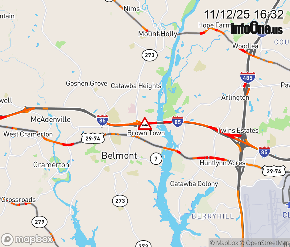 The right lane is closed at Exit 27 (NC-273). ![]() |
