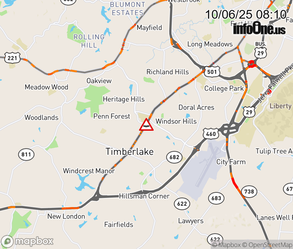 On BUS US-460 East in the County of Campbell, in the vicinity of Rt. 1544N/S (Campbell County), motorists can expect delays due to a vehicle crash. Lane closures exist. ![]() |