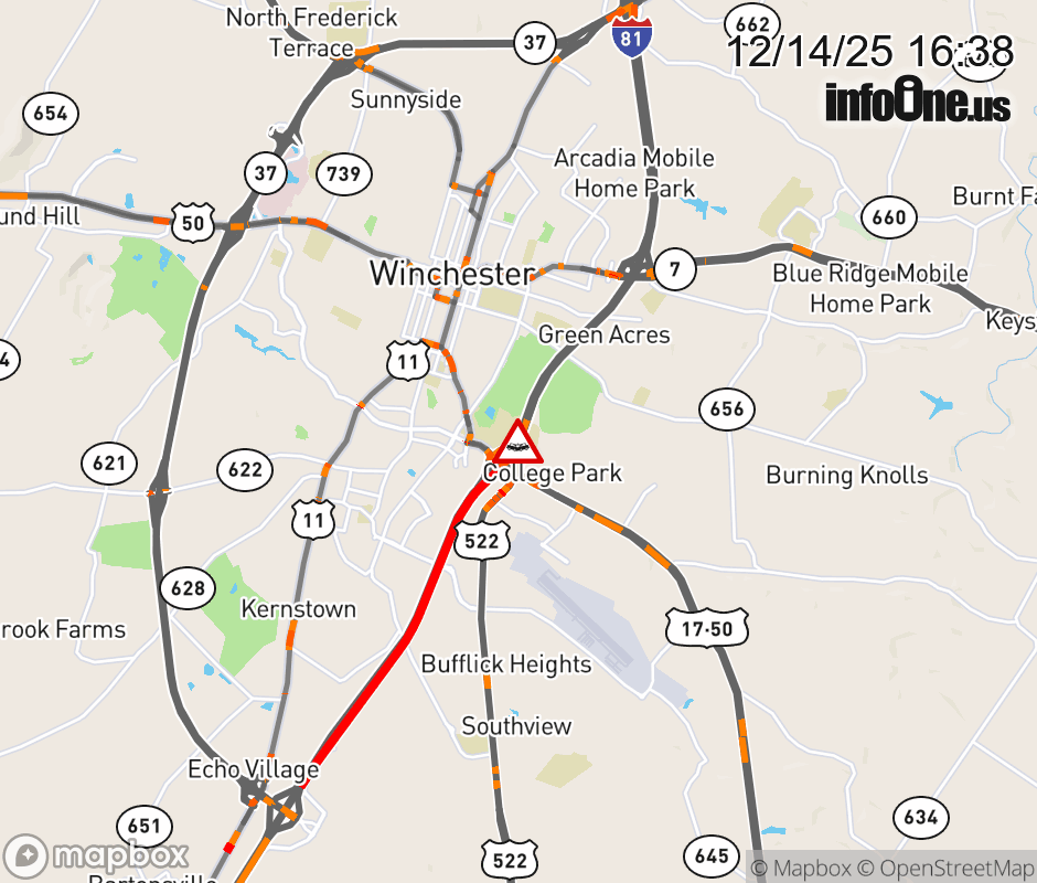 On I-81 North at mile marker 313.8 in the County of Frederick, motorists can expect delays due to a tractor trailer crash. Updated: Sun 12/14/25 4:38 PM EST ![]() Updated: Sun 12/14/25 4:38 PM EST |