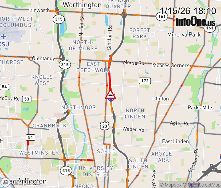 The right shoulder is blocked on I-71 South beyond E Cooke Rd, due to a crash. Updated: Thu 1/15/26 6:10 PM EST ![]() Updated: Thu 1/15/26 6:10 PM EST |